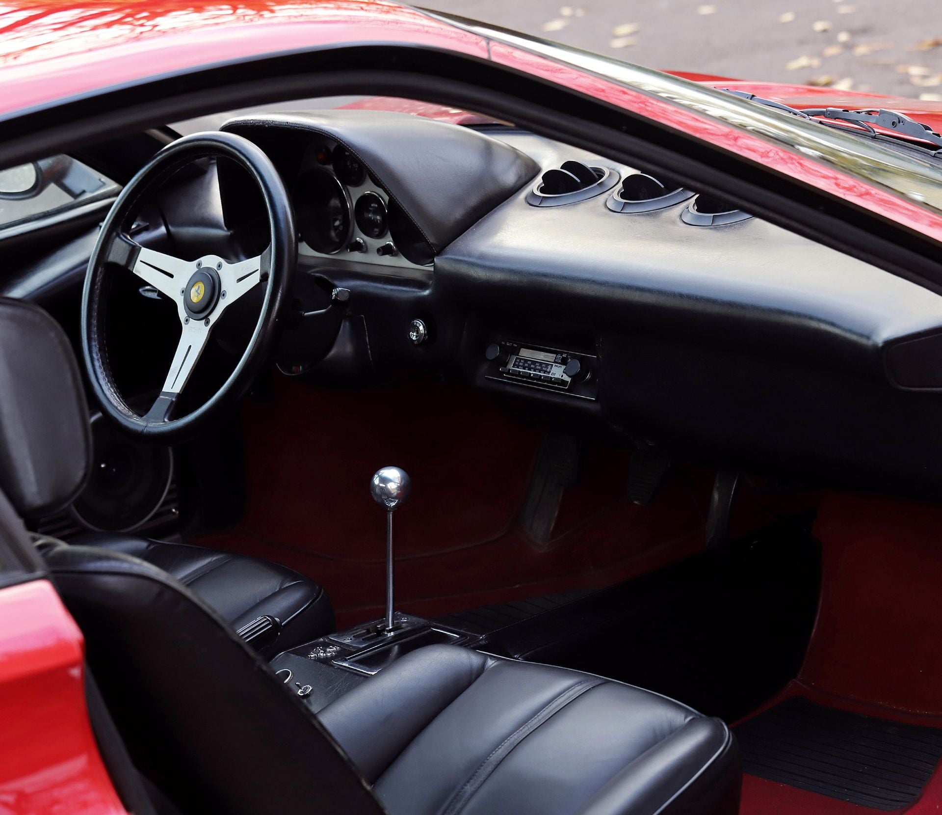 "Sold new in France by the importer Charles Pozzi in Levallois-Perret. Maintained by Pozzi, Auvergne Moteurs and Carrosserie Lecoq (repainted in 2001). Last service carried out by Pozzi in 2016. Overhaul to be expected. Only 808 examples with a polyester body made by Scaglietti, 150 kilos lighter."