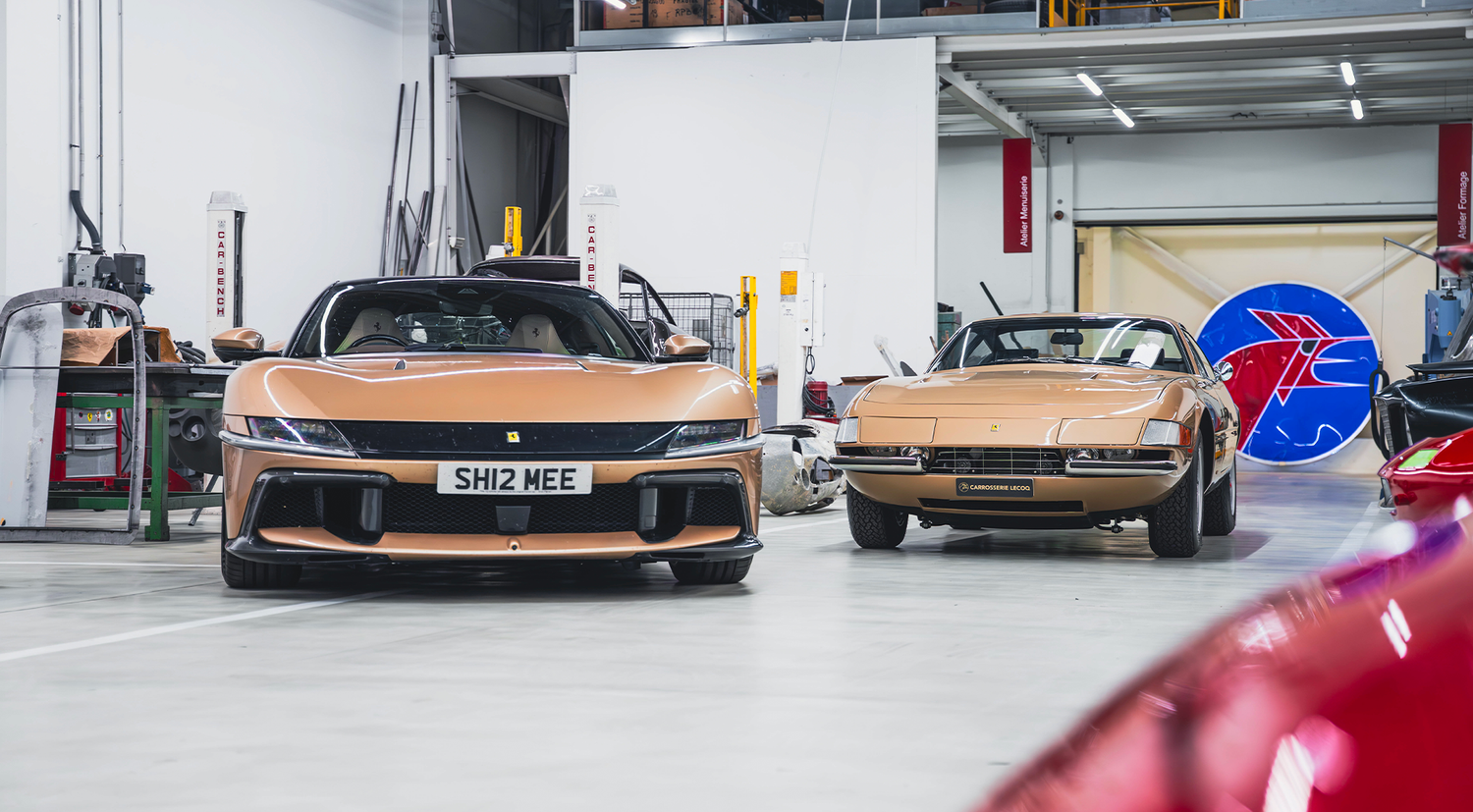 We had the privilege of bringing together two Ferraris in the legendary colour of Oro Chiaro: Shmee150's brand new Ferrari 12Cilindri, configured in this new and elegant colour, and a Ferrari 365 GTB/4 Daytona, restored in our workshops - one of only 16 originals produced in this now emblematic colour.